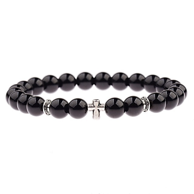 Hot Men Natural Wood Beads Cross Bracelets Onyx Meditation Prayer Bead Bracelet Women Wooden Yoga Jewelry Homme