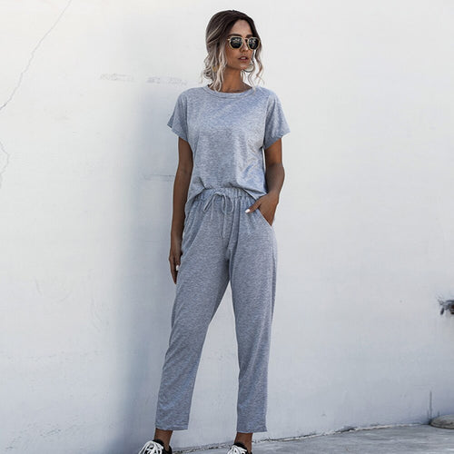 Hot sale 2pcs Women 2020 Summer Tracksuits Set Lounge Wear Short Sleeve Tops Long Pants Sweat Suits House Sports Casual Outfit