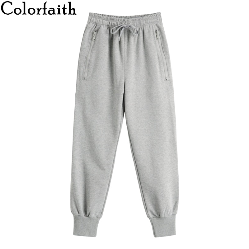 Colorfaith 2019 Spring Winter Women Pants High Elastic Waist Casual Zipper Pockets Sweat Sports joggers Lace Up Trousers P3984