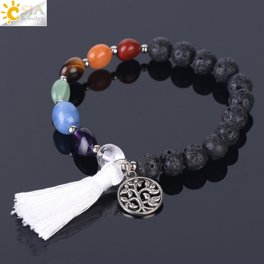 CSJA 7 Chakras Healing Bracelet 8mm Yoga Meditation Natural Stone Beaded Bracelets Real Crystal Quartz Women Hand Jewellery F398